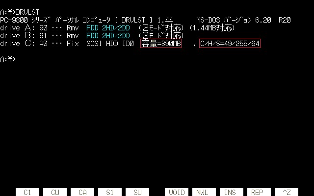 55系SCSIボードの一部は「SCSIドライブからC/H/S値を得る」という仕様のため、ドライブからC/H/Sを取得できないと
