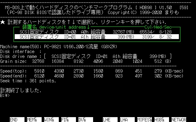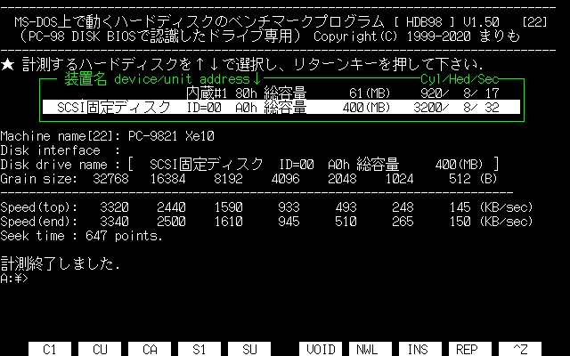 PC-98には「これだ!」といった標準ディスクベンチマークが存在しないので、DOSではまりもさんの