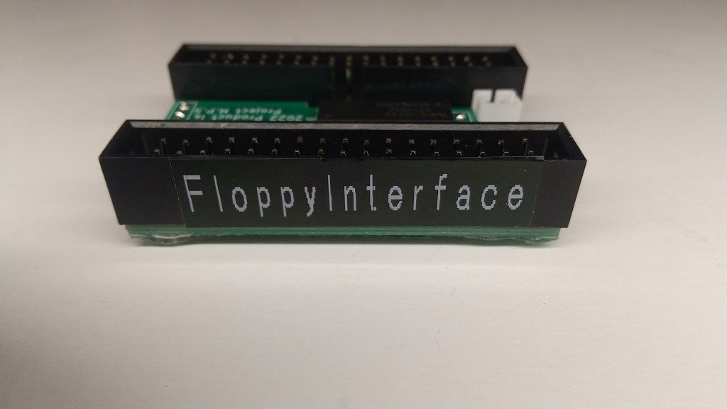 外見上、どちらが入力か出力か分かりにくいです。基板裏側または側面に「FloppyInterface」書いてある方が