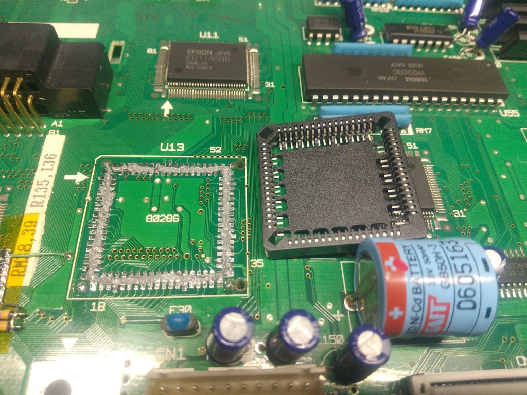 交換難易度の高さやCPUソケット(面実装型PLCC68ピン)の入手難から、交換を諦めて80286のまま使う人が多い中