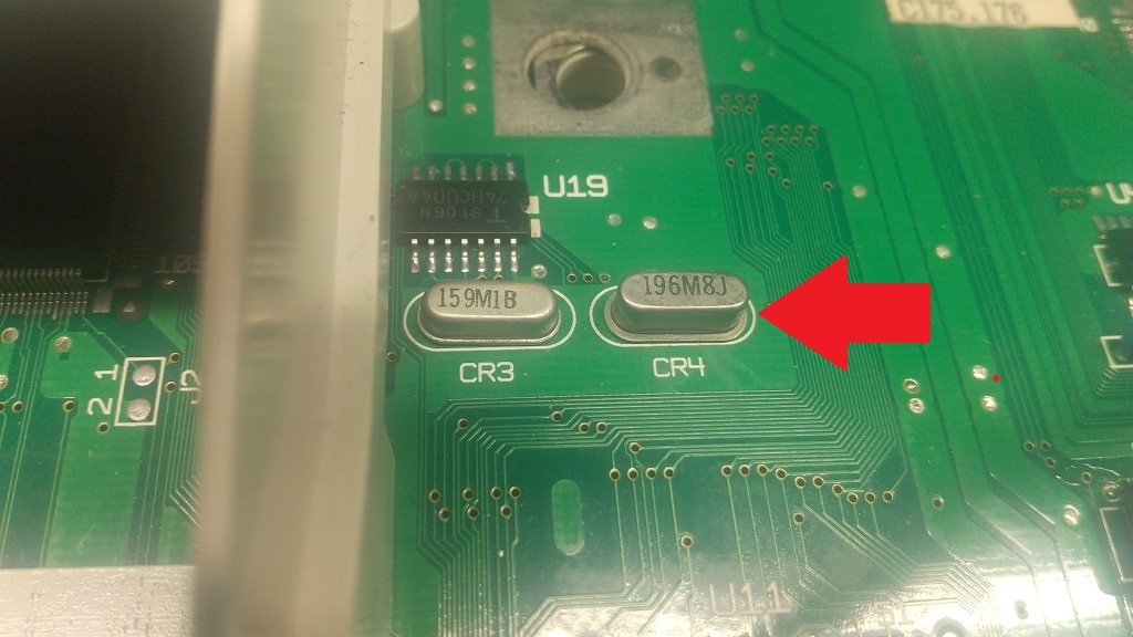 じゃあ分周数が少ない19.6MHzのほうを高クロックのものに交換すればいい?と単純に思われるが、そこが罠で