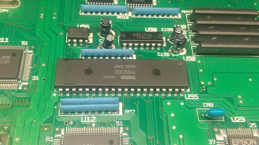 搭載チップは当時標準的なヤマハYM2203C、DACもこれまた標準的なYM3014B、オペアンプはTIのTL074CN(4chオペアンプ)です