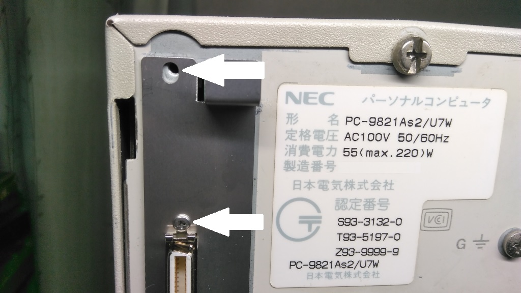1:PM-SC301NSのSCSIコネクタにブラケット固定ネジが取り付けられているので、これを取り外します