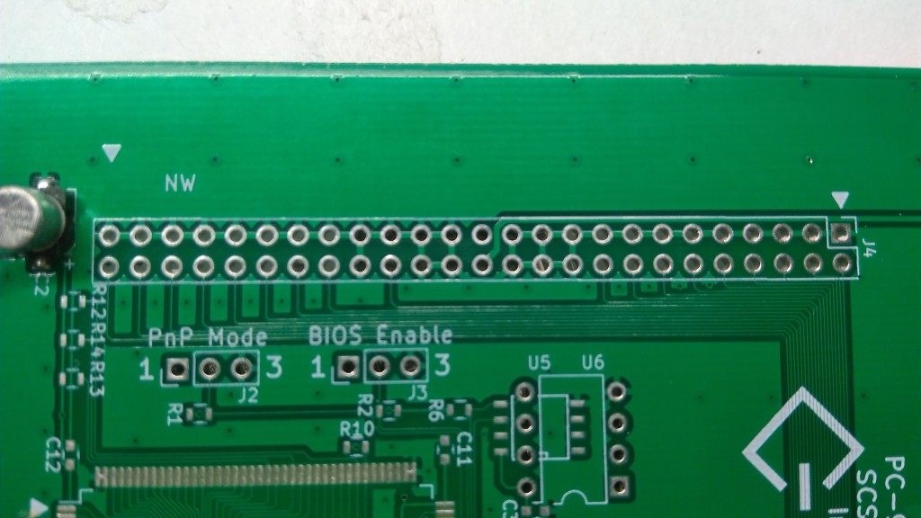 追記:PM-SC301NSには内蔵50ピンコネクタパターンがあります。ここに50ピンのピンヘッダをハンダ付けし