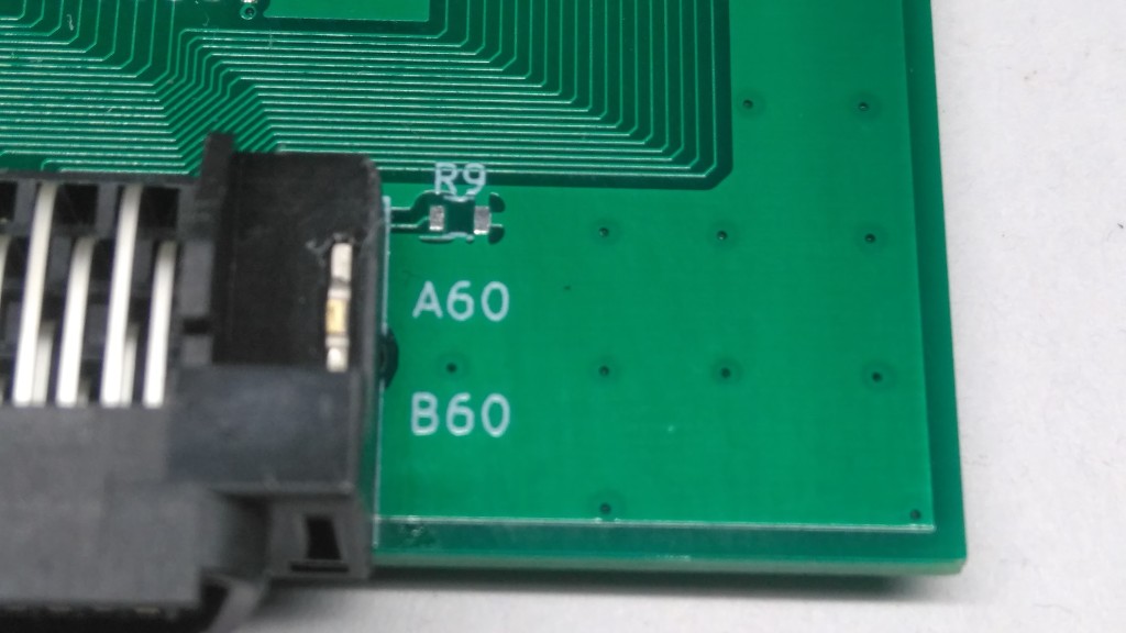 PM-SC301NSの本体接続コネクタ右側(A60とB60という文字が印字されています)の上にR9という空きパターンが