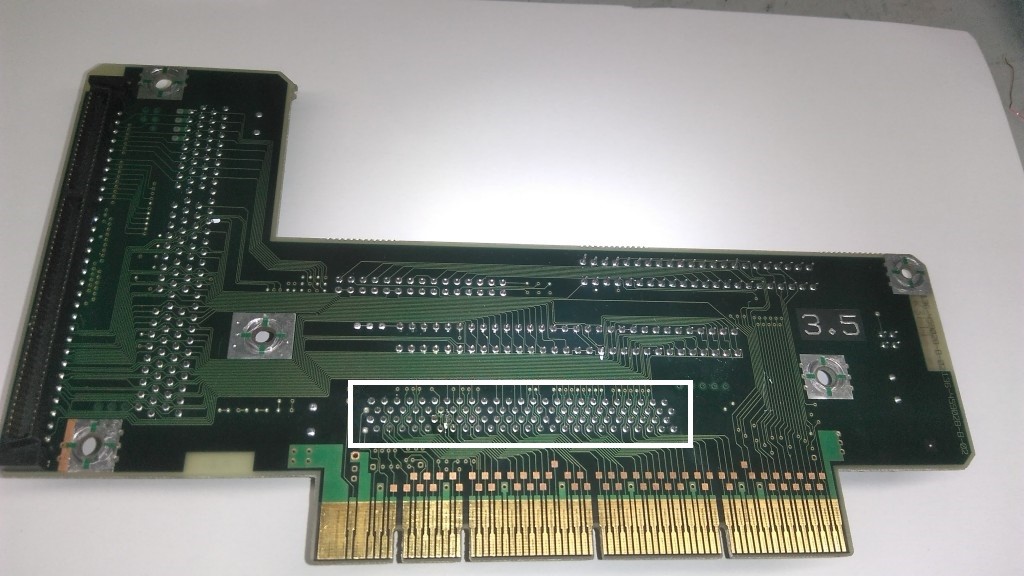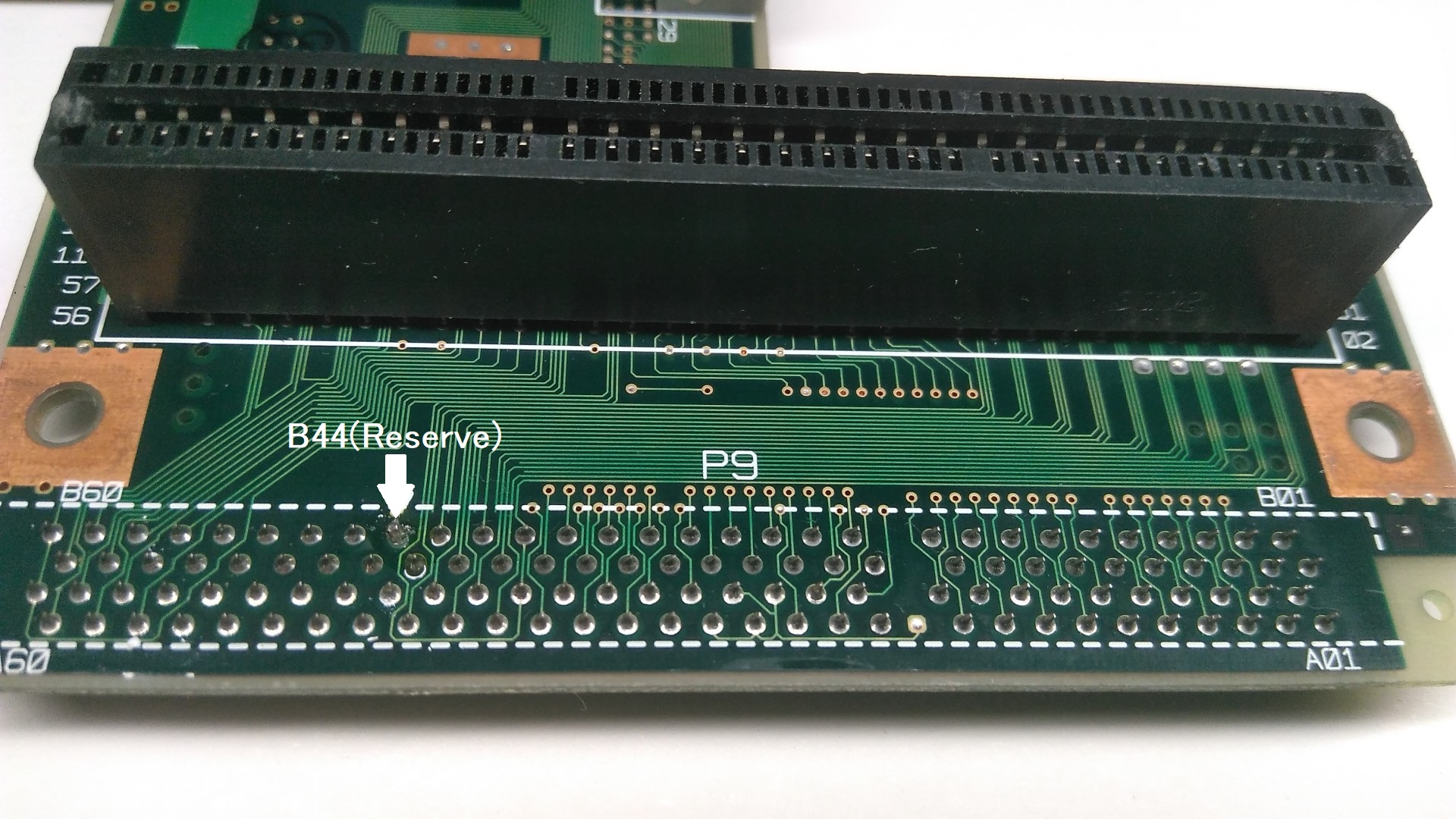 右画像(HDサイズの大きな画像でご覧いただけます):のSCSI専用スロット用コネクタのB44ピン(予約ピン)を