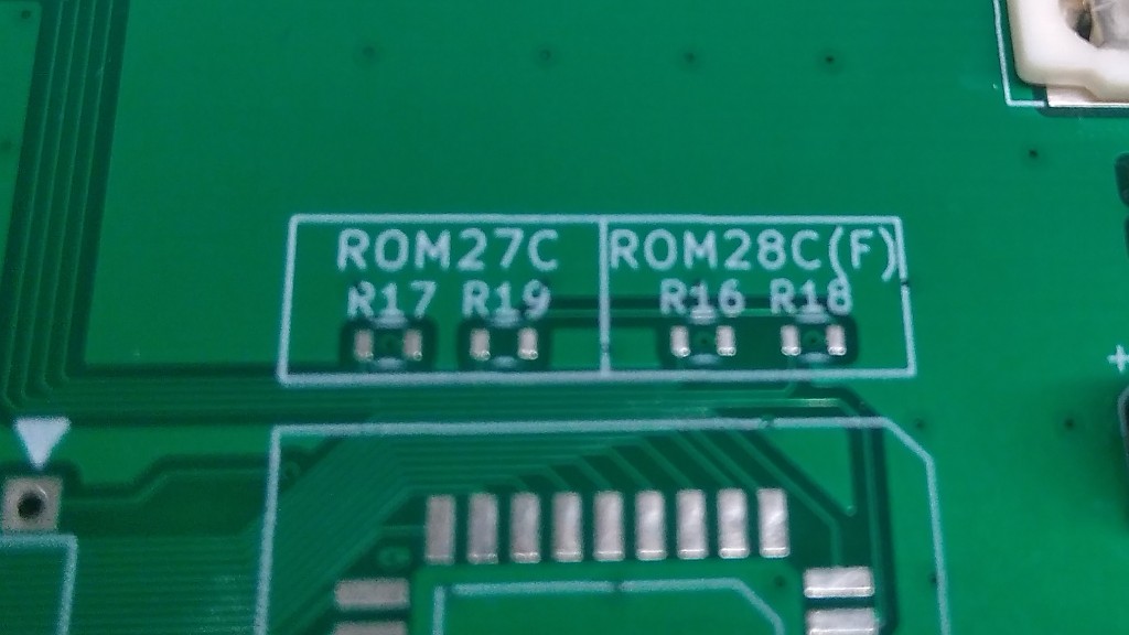 28C***(または28F***)という文字列が確認できますので、その文字列に応じたR16~R19パターンに0Ωの抵抗を2個