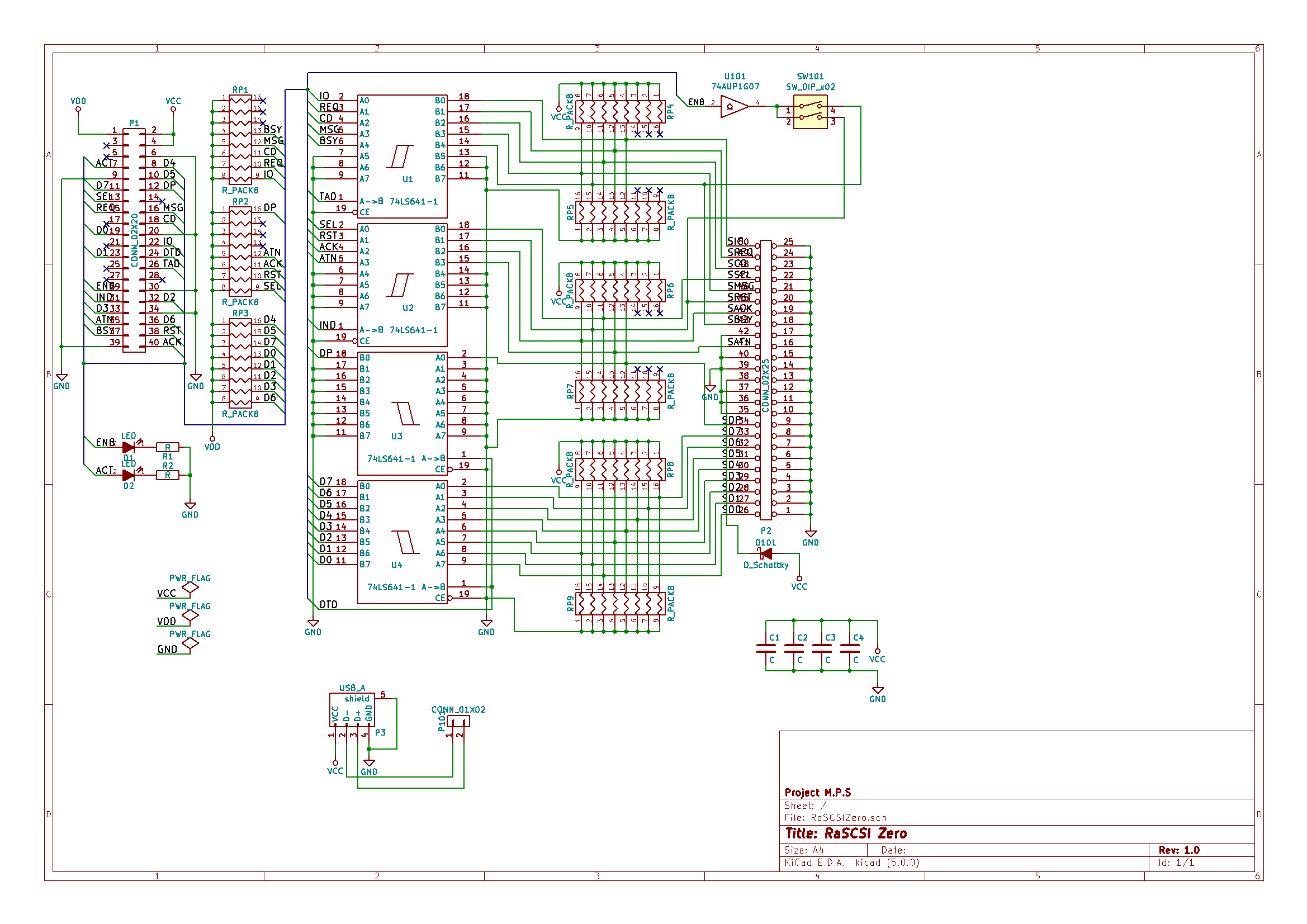 「RaSCSI for SC-98」に比べると少し洗練された回路図。でもまだスパゲッティかな
